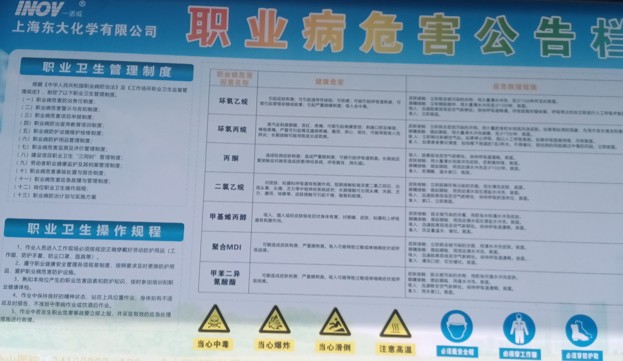 單位簡介:上海東大化學有限公司成立于20106月,由山東一諾威聚氨酯股份有限公司和上海東大聚氨酯有限公司共同投資成立,地址位于上海市金山區金山衛鎮海金路598號。公司主要產品有聚氨酯防水材料、聚氨酯粘合劑、水性特種聚醚產品、表面活性劑產品、減水劑聚醚產品等。公司立式罐區和臥式罐區構成危險化學品重大危險源。